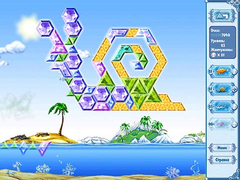 Игровое поле делится на несколько зон: основную, где мы собираем нашу мозаику из льдинок; нижнюю – это вода, в которую падают льдинки; и колонка c меню, где указываются полученные очки и бонусы. При сборе требуемых фигурок игрок не ограничен временем. Единственное условие – вода не должна быть переполнена льдинками. Когда это произошло – вы проиграли.