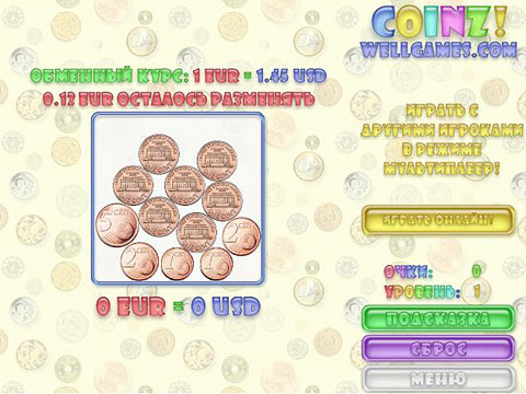 Еще одна игра из коллекции Wellgames. В «Coinz!» замысел прост: на игровом поле есть некоторое количество монет двух различных валют, которые мы должны обменять в эквиваленте, указанном внизу экрана. Признаться честно, я сперва не сразу понял, о чем идет речь, пока с экрана не исчезли первые обменянные монеты. Но потом, как говорится, "затянуло" - не оторвешь!