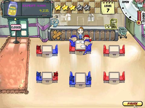 Вам потребуется наладить ресторанный бизнес. За ограниченное время уровня нужно «отбить» и, если удастся, приумножить определенную сумму денег. Придется заботливо рассаживать клиентов, вовремя их обслуживать, расторопно предлагая меню, забирая заказы и поднося готовые блюда, а так же не забывая убирать грязную посуду. Управляется процесс с помощью «мыши». Игра тренирует внимательность, сообразительность и логику.