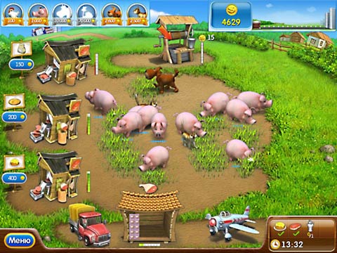 Как играть Управление игры осталось таким же простым: кликаем, чтобы совершить какое-то действие: купить животное, накормить животное, получить продукты от животного и поехать на базар. Кликаем ОЧЕНЬ быстро, когда падает медведь и нам нужно его словить и конечно быстро отправить на базар. Обратите внимание, что раньше медведь, выбираясь из клетки просто убегал, а теперь он может врезаться в вашу постройку, которая в свою очередь теряет все свои навороты и может стать на начальный уровень производительности.