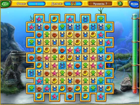 «Фишдом» - классический представитель жанра «собираем по три и больше». Игровое поле состоит из закрашенных клеток, заполненных различными фигурками. При соединении в ряд трех и более одинаковых фигур очищаются определенные клетки поля. Ваша задача – «очистить» поле полностью.