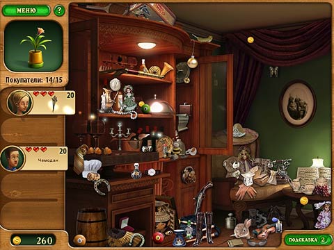 В каждой комнате вы должны будете отыскать определенные предметы, которые будут хотеть приобрести ваши покупатели. И чем быстрее вы найдете нужные вещи, тем больше денег вы сможете заработать. Старайтесь не спешить, а внимательно изучить помещение. Потому что как только один из клиентов получит желаемый предмет и отдаст вам деньги – на его место придет новый и будет просить вас отыскать новый предмет. Помимо прямой продажи товара вы сможете заняться и поиском монет, оказывается в каждой комнате спрятано несколько золотых монет, стоит лишь присмотреться и отыскать.
