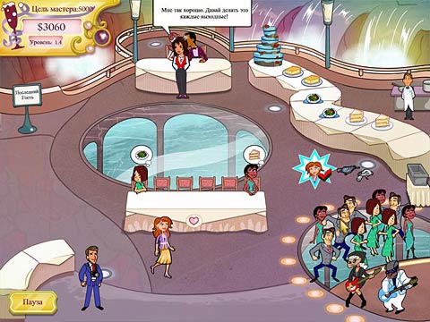 Во всем вам будет помогать некая Куинн, организатор свадеб. Следуйте ее подсказкам и тогда вы непременно преуспеете в прохождении уровней и наберете большое количество очков. А для того, чтобы набрать как можно больше очков, вот маленький совет: старайтесь выполнять как можно больше задач одновременно. В таком случае, вы также заработаете больше денег и сможете приобрести какие-нибудь улучшения. К примеру, новые столы или стулья.