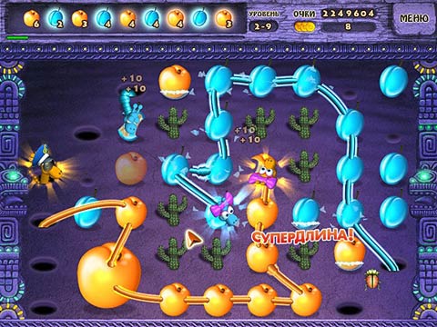 Итак, игра «Нямстеры 2» - это качественное смешение жанра «собери по три» и тайм-менеджмента. Думаю, вы уже заинтригованы, ведь такого микса мы прежде не встречали. А принцип игры предельно прост: на игровом поле расположены норки в которых обитают нямстеры (следовательно, по форме они скорее похожи на червячков). Остальное место на экране занимают разноцветные фрукты. В буквальном смысле растягивая нямстера, игрок направляет его жевать фрукты, которые подходят ему по цвету. И так следующего, и следующего. Так, мы должны контролировать не только процесс пищеварения забавных животин, но и постепенное уничтожение продуктов питания.